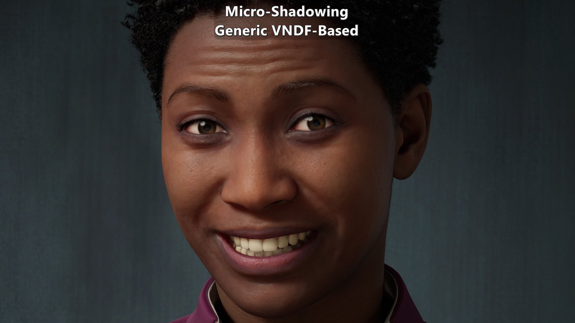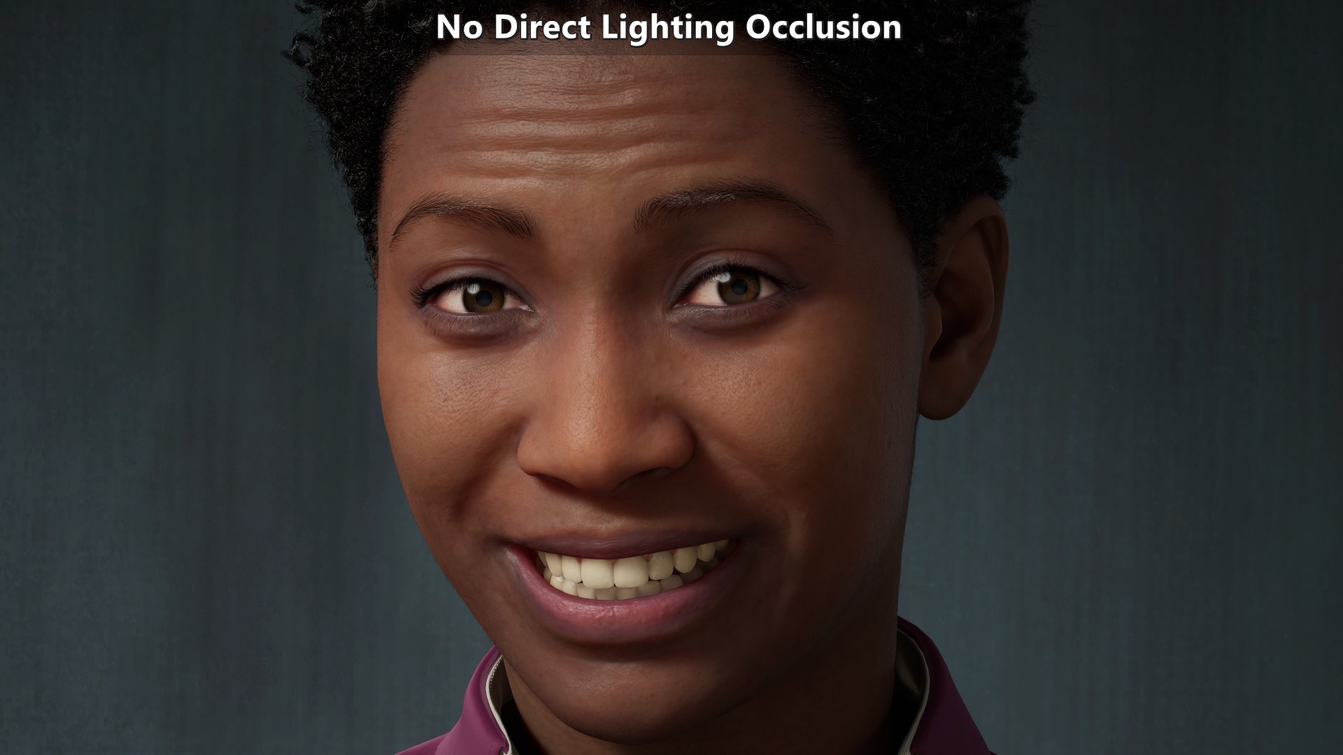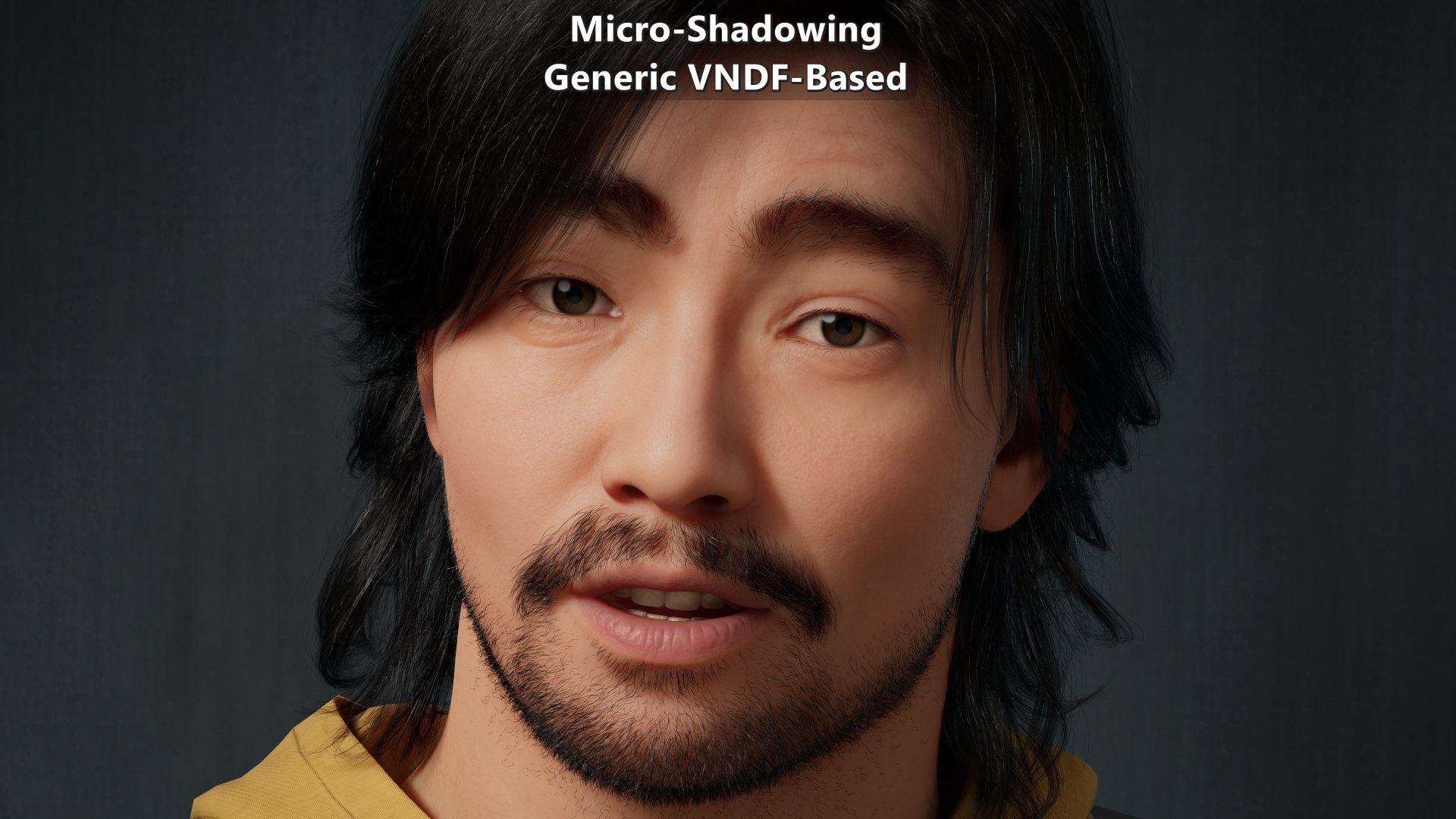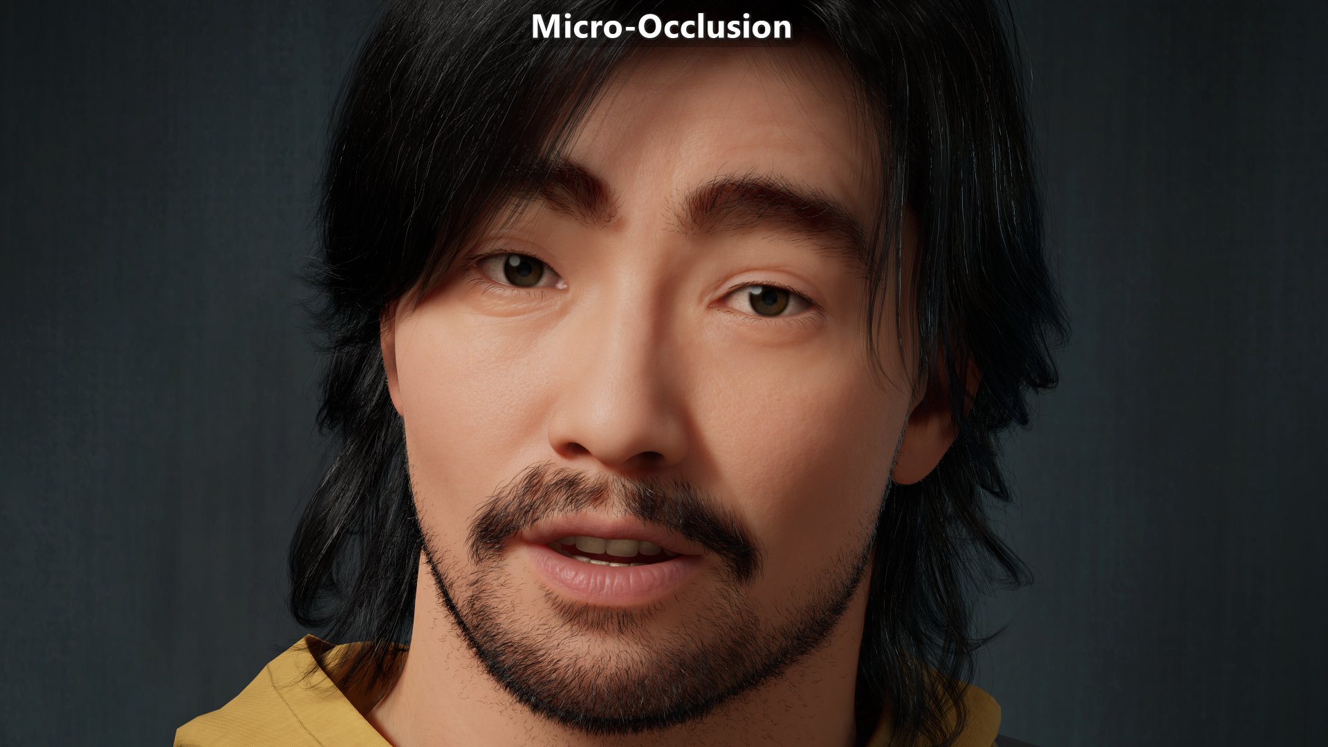 Modified version of a MetaHuman sample. Animated albedo disabled, shaders and subsurface profiles modified to make them move physically based. Micro-occlusion data is the same on close ups and further away. The key light is on the right from the character’s point of view which explains why the left side of the character from their point of view shows more micro-shadowing