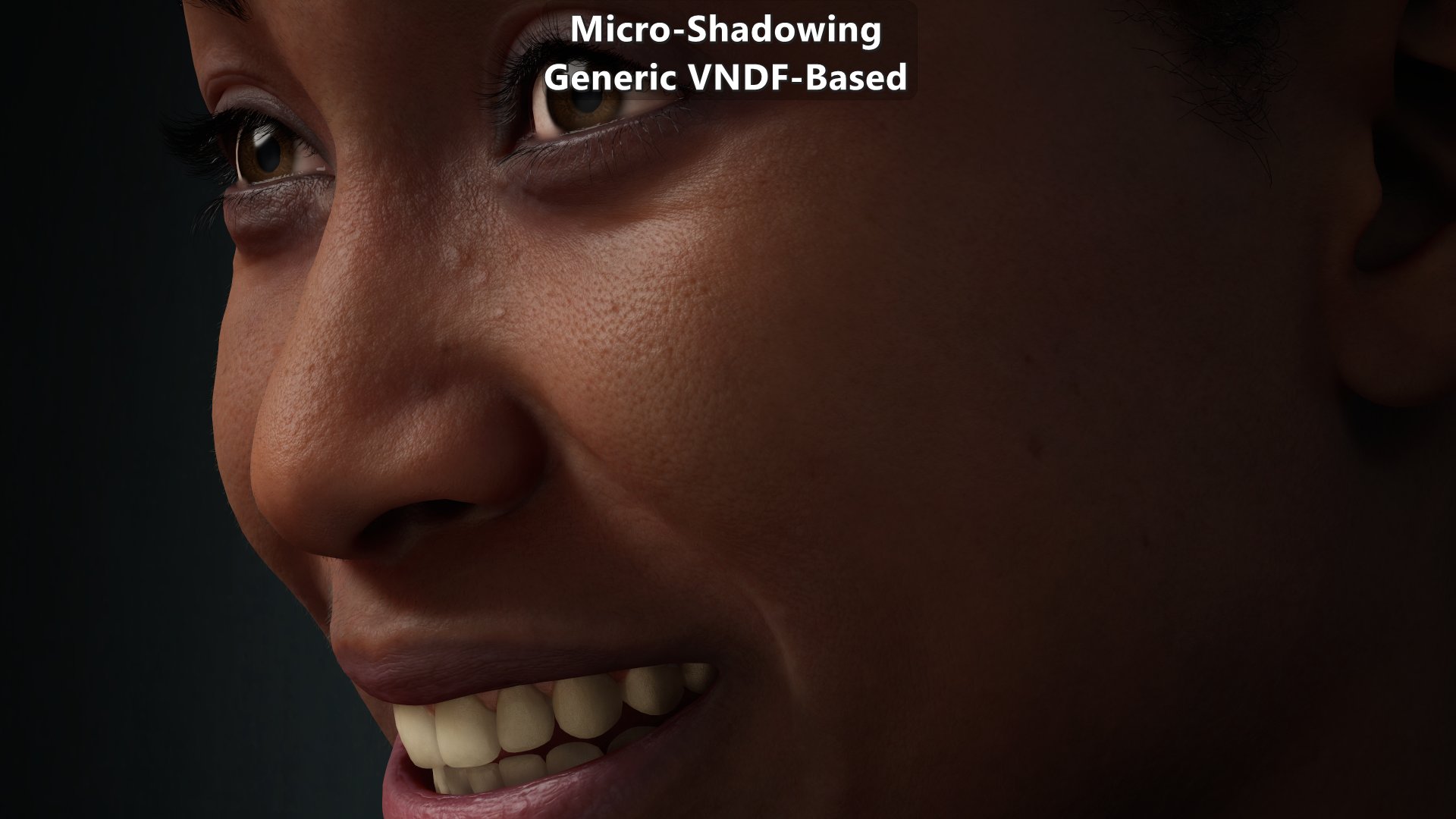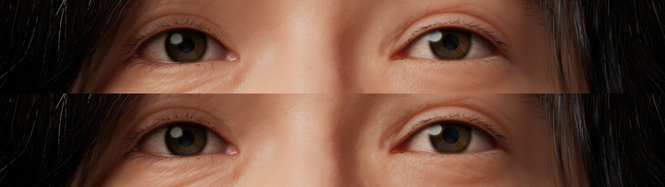 | Skin with micro-occlusion at the top, and micro-shadowing below. Both are using the same micro-occlusion data and were taken with the exact same exposure. |