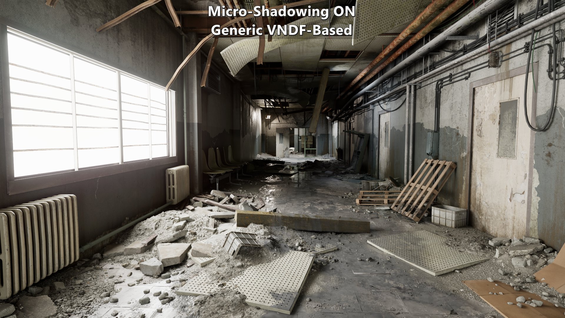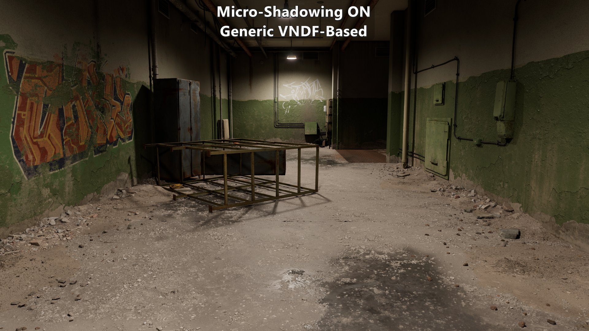 The results shown here are only meant to represent the visual impact of the feature under the same conditions, and using the 3D LUT approximation. There isn’t any tuning of the materials based on distance, view direction, et cetera. None of the content shown here was created with micro-shadowing in mind which means that qualitative comparisons are not as relevant. With that said, they still reflect the differences among the approaches.