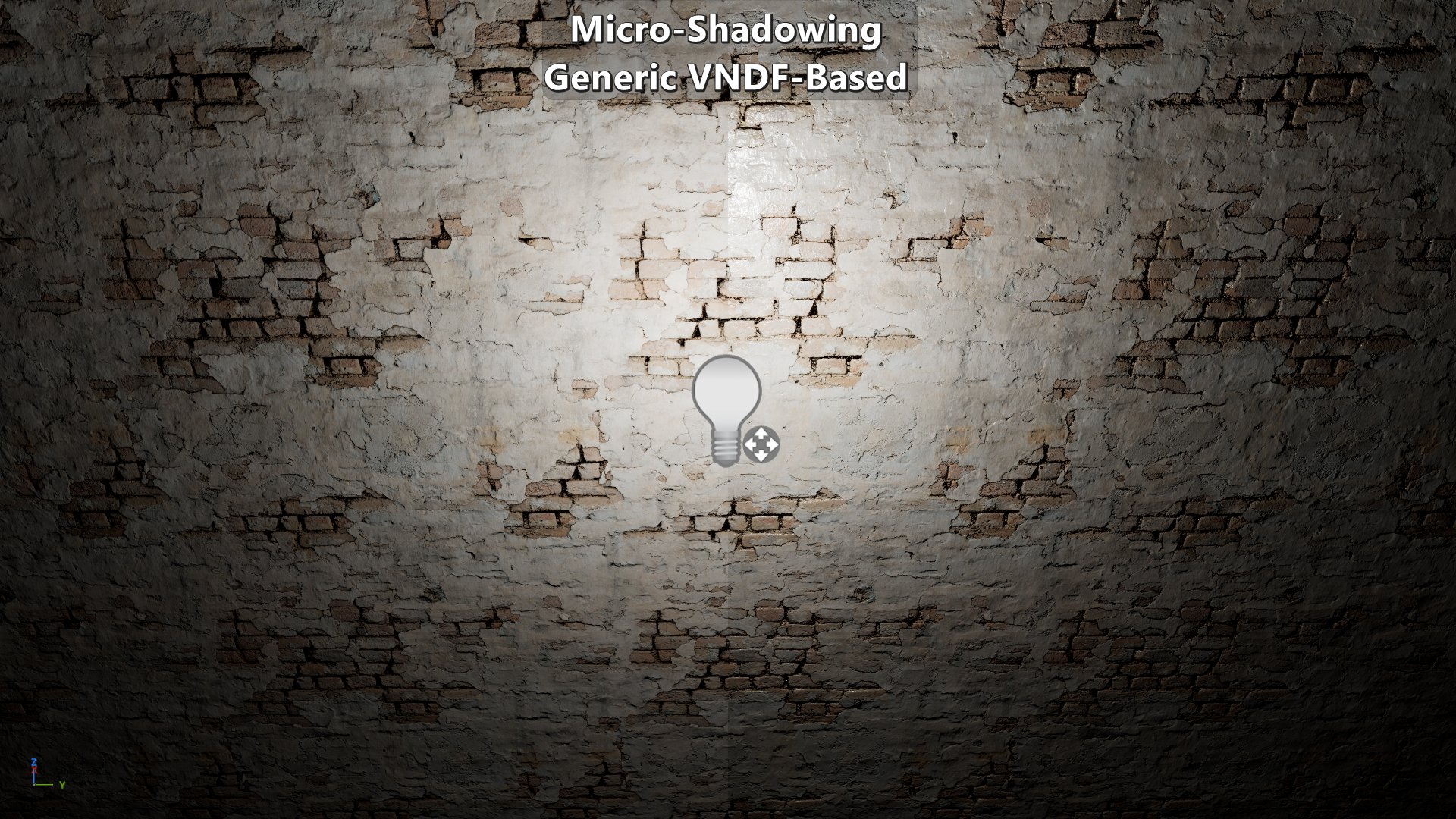 In this post I have been referring to this approach as Generic VNDF-Based Micro-Shadowing. The reason for using “Generic” as a term is that the approach as shown here isn’t aware of the micro-BRDF of the microfacets. As is, this approach assumes that if a microfacet is visible through the visibility cone, then both the specular reflection of the light on the microfacet and the diffuse reflected directions on the microfacet are also visible through the visibility cone. That creates a fair amount of under occlusion, so improving that will be the focus for a future post. The other issue for a future post is the handling of area lights that are not implemented using the “representative point” approach.