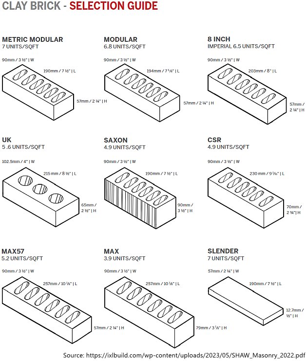 Brick size information from a Canadian brick manufacturer Shaw Brick. |