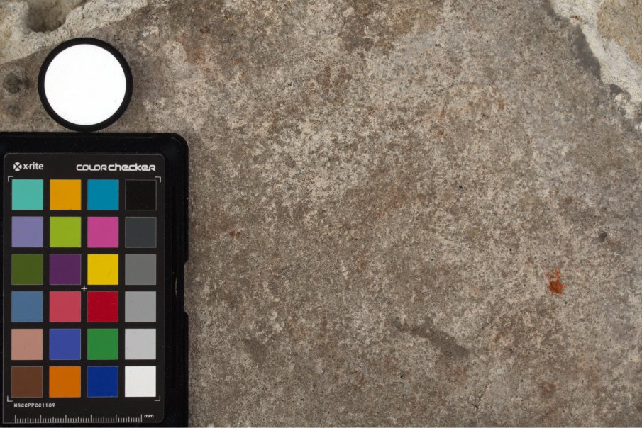 This is known as diffuse albedo when talking about dielectrics, or as specular color when talking about conductors. For a scalable and portable approach to capture diffuse albedo you should rely on cross-polarized photography. That allows the blocking of specular reflections since that light specularly reflected remains polarized and it gets blocked by the filter on the lens. Make sure that your photos include a ColorChecker for color correction, and a 99% reflectance Spectralon that you can color pick to use to use as a divisor for the whole image so that everything ends up in the right albedo range. The paring of the 99% Spectralon with the 2% Spectralon is also useful to ensure that your exposure bracketing captured the whole range necessary, and also to reference when capturing low diffuse albedo surfaces like asphalt. Another relevant item when you are not using a material scanning device (or you are not making your own) or don’t have a fully controlled light condition is to have a powerful flash. A powerful flash will allow you to keep the camera at its native ISO and with a narrow aperture, while at the same time reducing the impact of non-polarized outside lighting in the final frame.