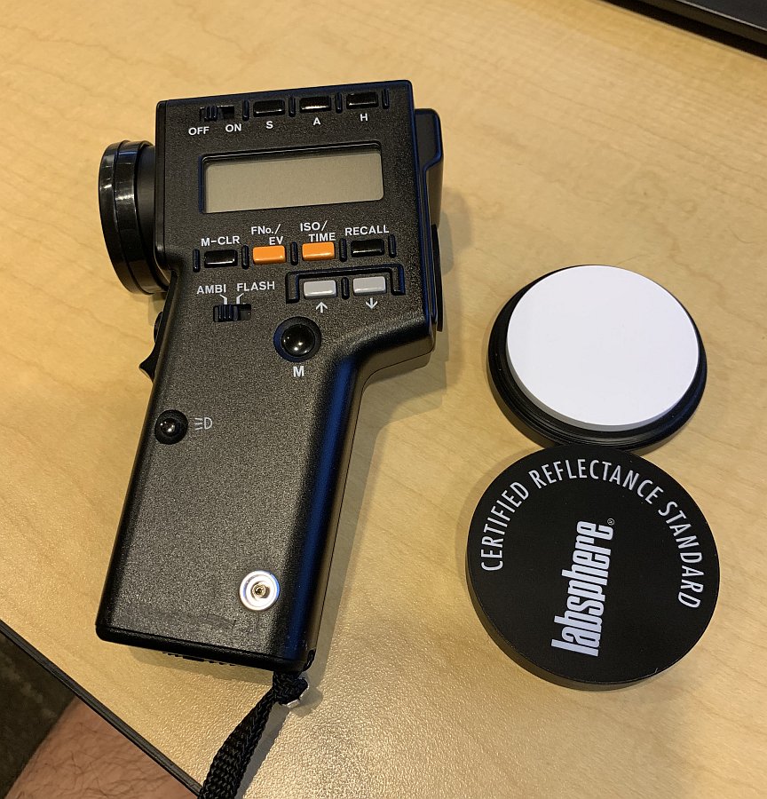 Spot meter, Spectralon, and spot + illuminance meter. |