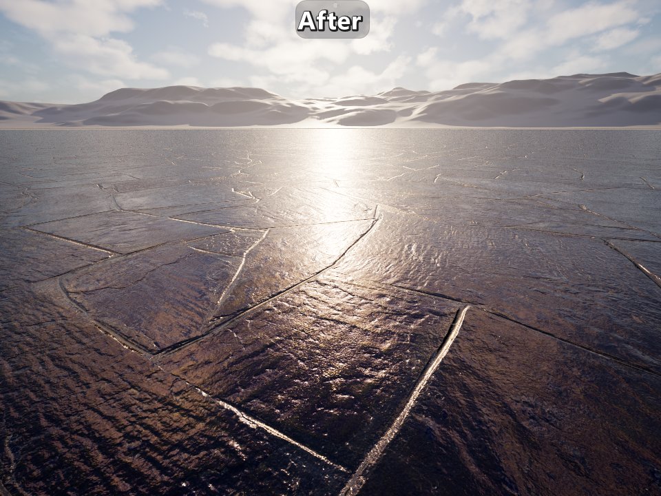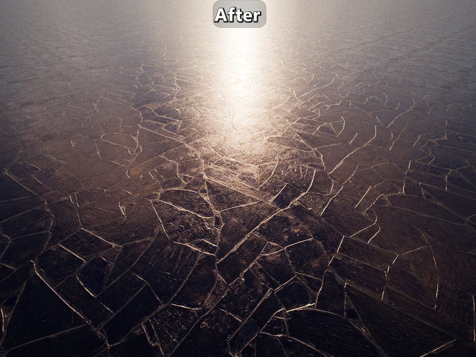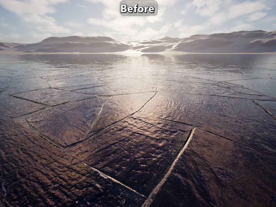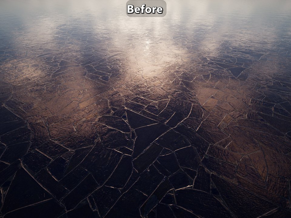 Overly smooth slate floor texture set before and after filtering the Normal Distribution Function (NDF) to preserve the appearance. |