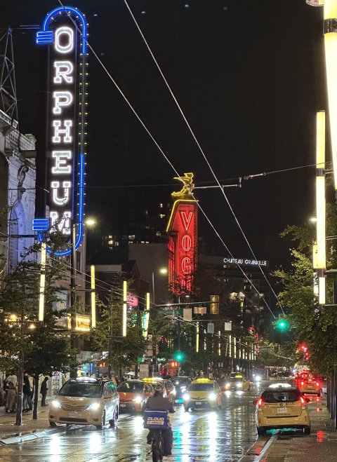 Street signs in Vancouver where maximum allowed luminance is 300 nits at night and 5000 nits during the day. |